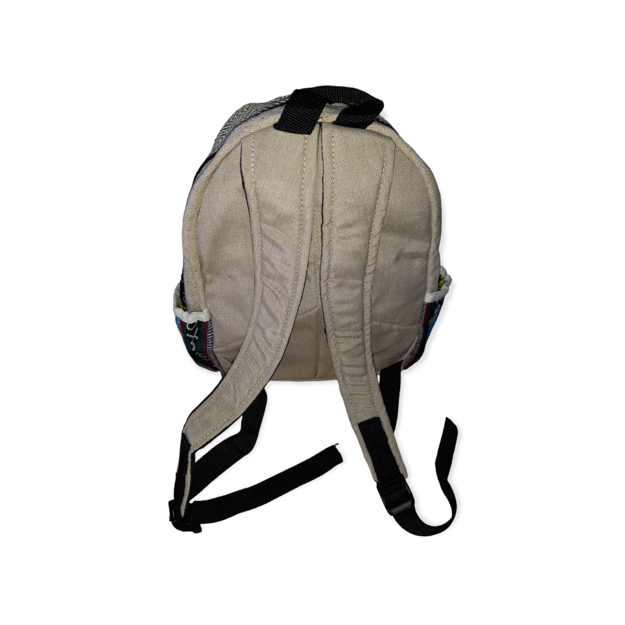 Our Badass Mini-Backpack is made of hemp material from Nepal. This unique mini-back pack is made for those that love a good sturdy backpack with two outside zippered pockets and two open side pockets. Adjustable shoulder straps. Perfect for everyday use, shopping, hikes, weekend getaways, and fun events. So many uses and just the right size!